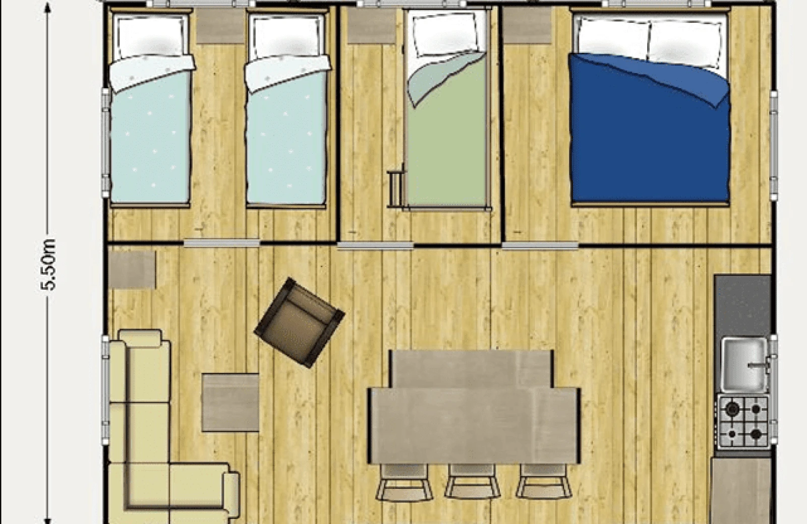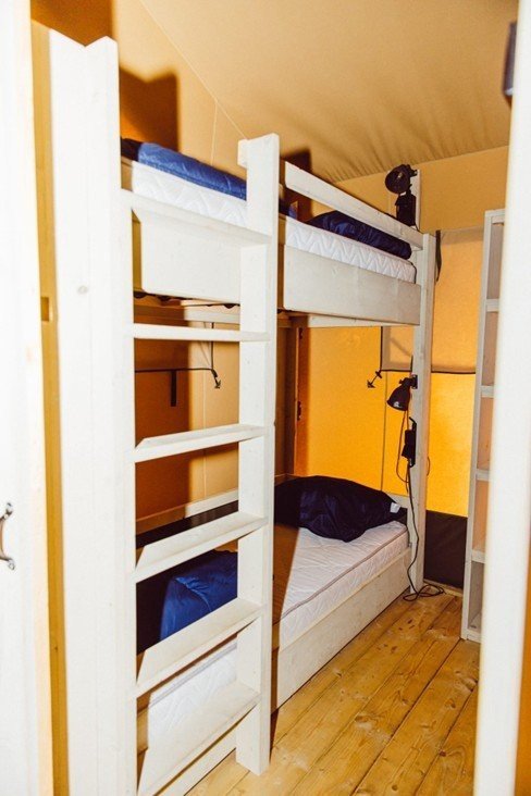 Erleben Sie den Komfort des Glampings in einem unserer geräumigen Safarizelte. Ideal beispielsweise für Familien mit 4 Erwachsenen und 2 Kindern.